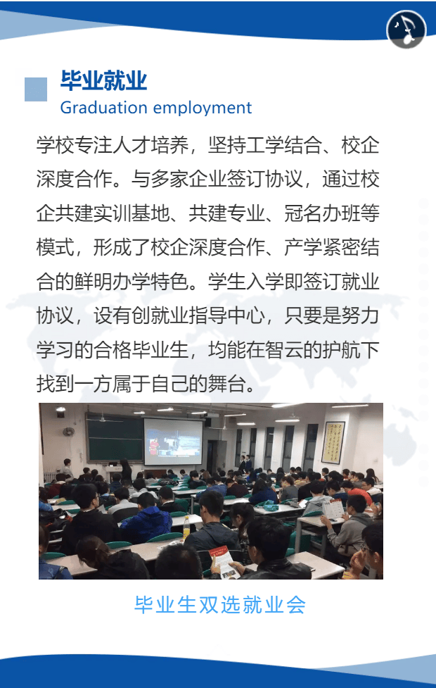 湖南智云技工学校是湖南省人力资本和社会保障厅核准设立的全日制技工学校(通俗高中划一学历),坐落于长沙市望城经济开辟区。学校以创立国度级职高名校为方针,堆积了以中南大学博士生导师黄合来传授为焦点的治校专家团队,以及一多量硕士研究生级此外任课教师。学校现开设“电子手艺使用、计较机使用、道智能交通手艺使用、长儿教育、护理、中药、美术设想”等8个优良专业,此中“道智能交通手艺使用”专业是取中南大学聪慧交通沉点尝试室结合人才培育专业,是国内从手艺层面处理交通“拥堵”取“变乱”的新型手艺专业,结业生是部分、交通科研单元以及国际国内智能交通企业出格青睐的紧缺手艺人才。 |
