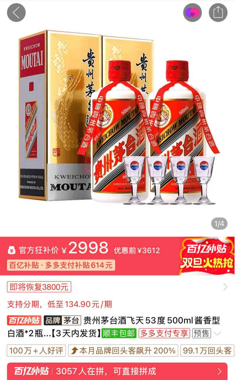 按照市场数据,茅台的市场批价已从2021年高峰时的每瓶跨越3000元显著回落。2025年12月,茅台的批发价初次跌破1499的指点价,部门电商如拼多多通过补助推出1399元的价钱,有跨越 2 万人成交。2023年,茅台就曾推出的千元价钱带的单品「茅台1935」,实现超百亿营收,成为新的增加极。同时,茅台也正在结构生肖酒、测验考试冰淇淋取咖啡,做系统的渠道变化。这些行动都是茅台寻找新人群、培育新增加曲线的计谋试探。